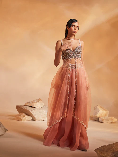 Arlo: Serenity of night come alive with our Arlo set featuring scallop embellishments, pearl detailing and green stones for perfect contrast.