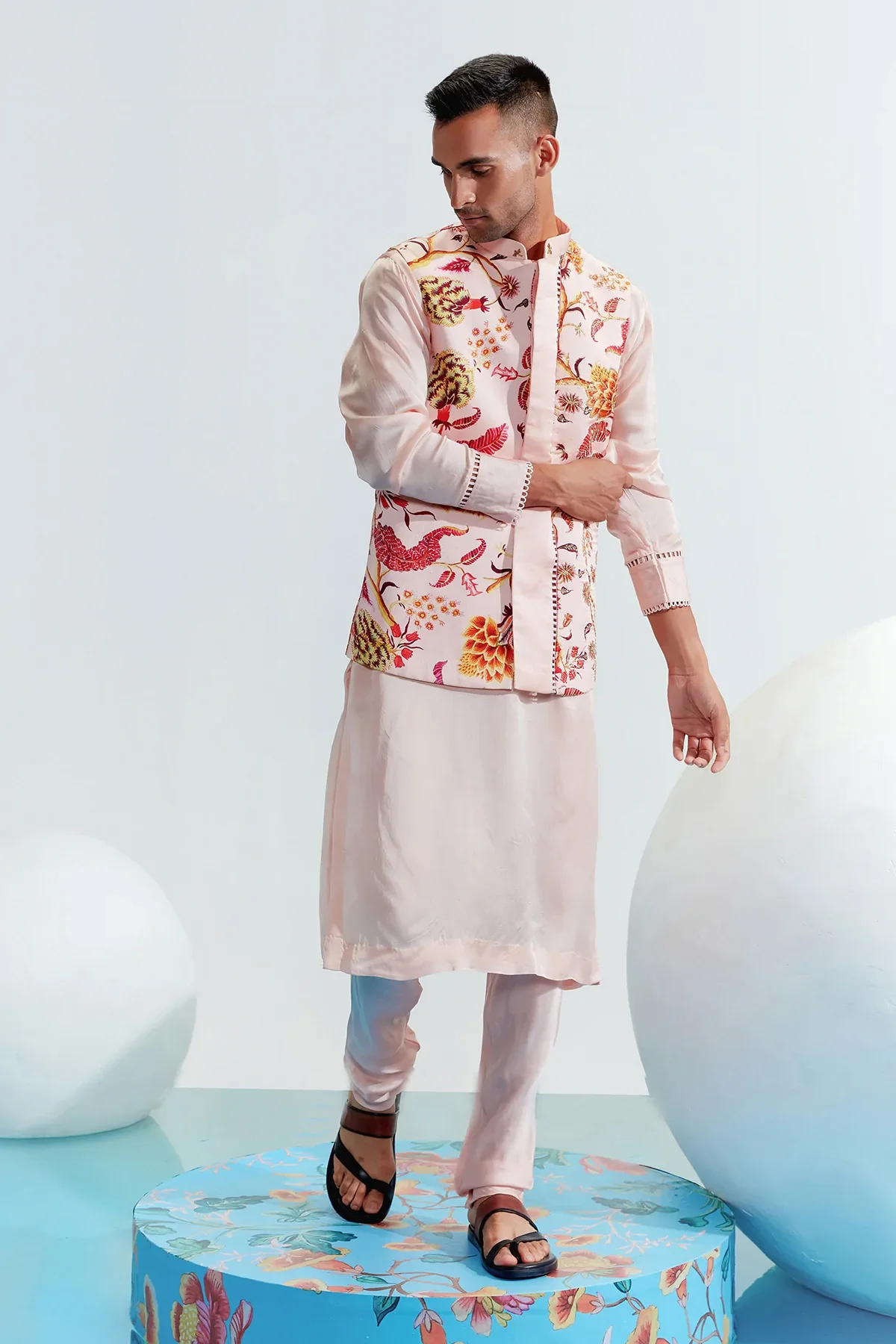 Nude satin organza embroidered bandi, satin organza black kurta and churidaar set