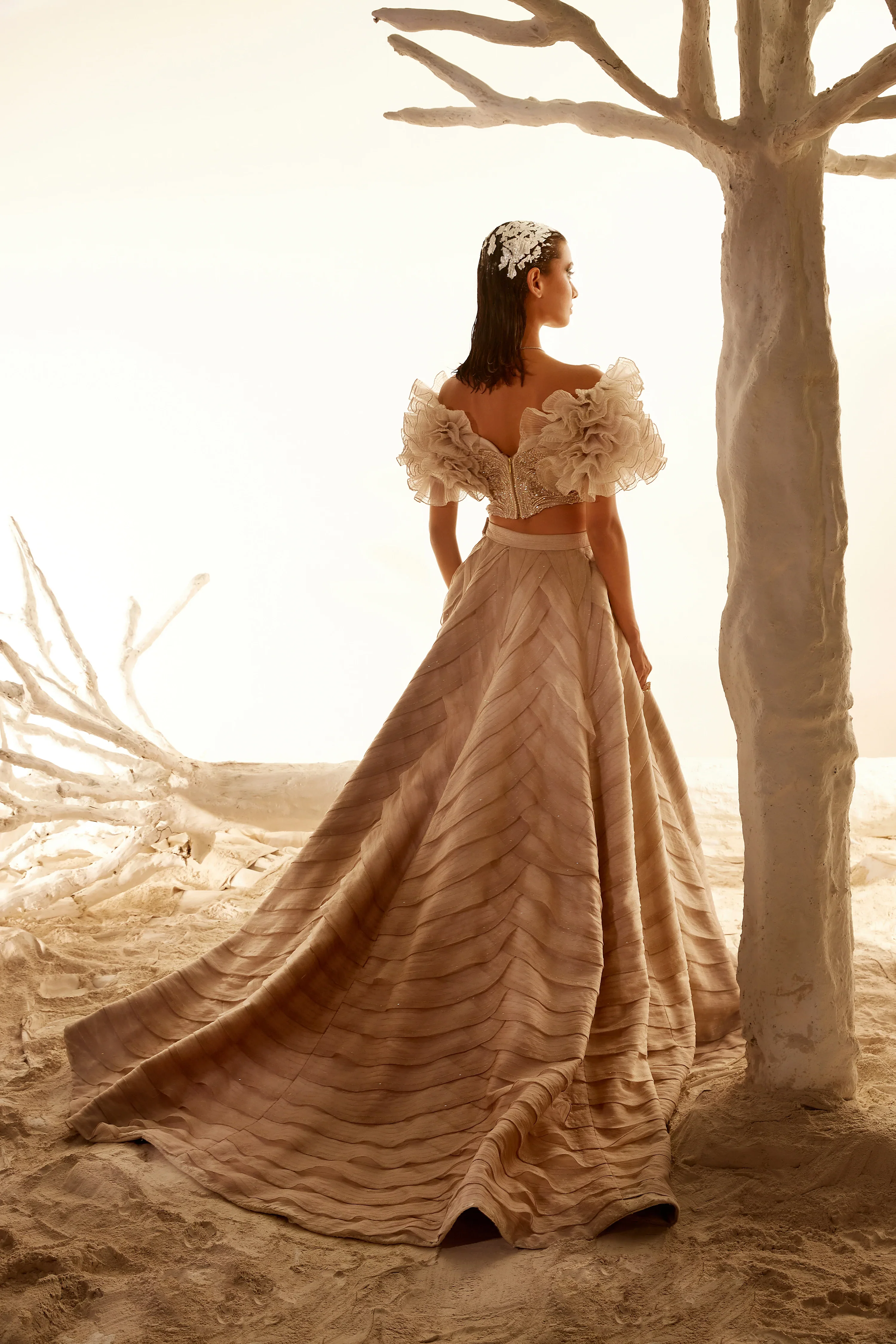 Crush Organza Ruffle Blouse With Layered Skirt
