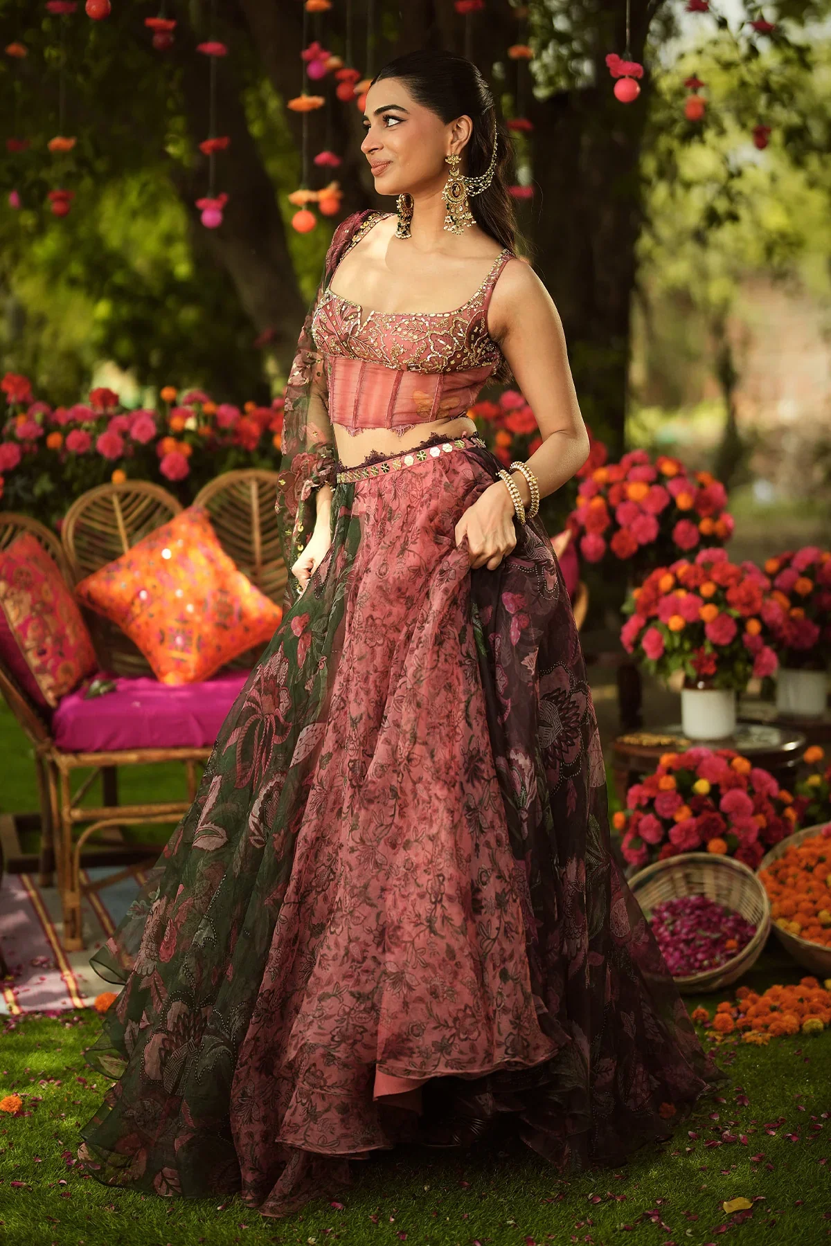PALAK - Hand Embroidered Corset Top Dupatta Lace Detailing Lehenga