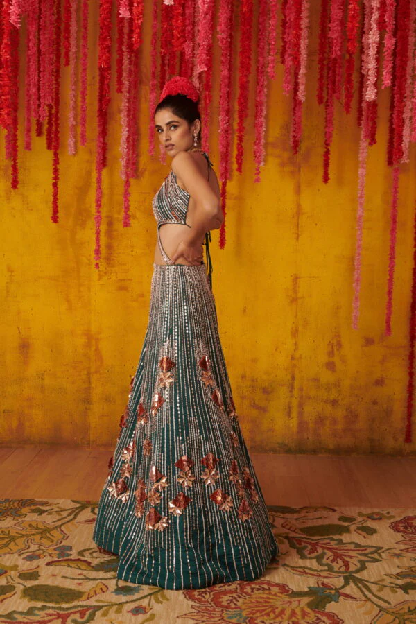 Sheen Green Indo-Western Jumpsuit In Crepe With Cutdana, Moti, And Stone Patti